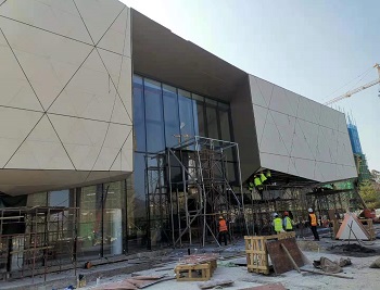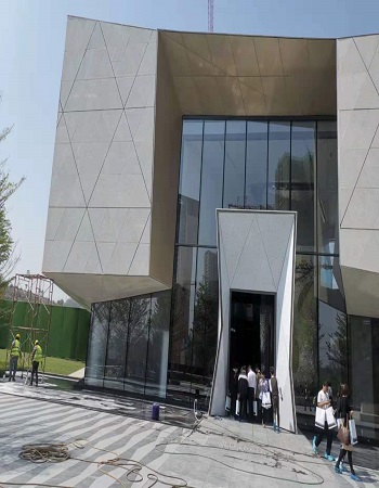 This project was a new development of a marketing center for its residential project in Huizhou, China. KC PANELS (KCP) supply the stone honeycomb panels with limestone veneer to this project. Each panel was designed into rectangular shape in large format, therefore the solution of honeycomb panels was the only way for achieving such design intent.