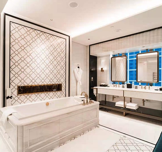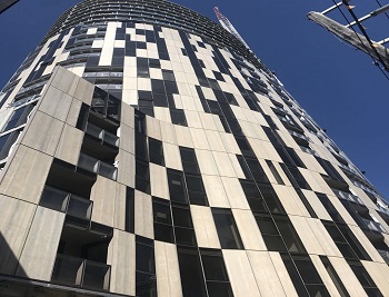 KC PANELS (KCP) supply the stone honeycomb panels with travertine veneer to the Kings Domain Tower. They are later on being installed onto the unitized curtain wall with windows and glass integrated. Such system greatly saves the installation time and cost for this project.
